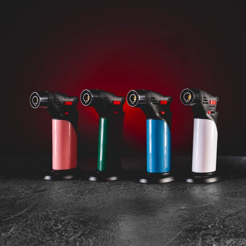 Straalaansteker niet alleen geschikt voor het aansteken van sigaren. Ook uitstekend geschikt voor het aansteken van kolen in waterpijpen, open haarden of grills. U kunt deze jetaansteker ook gebruiken voor het aansteken of verwarmen van glazen en keramische ketels voor oliebongs of op glazen oliepijpen (Oil Pipe), die bedoeld zijn voor het roken of inhaleren van BHO-kruidenextracten (olie, was). De aansteker is navulbaar en voorzien van een zekering tegen ontsteking. Hoogte van de aansteker: 10,5 cm.